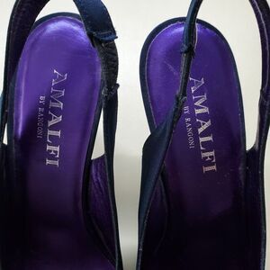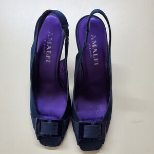 Vintage Amalfi by Rangoni Navy Silk Slingback Open Toe Heels Womens 8.5N Italian