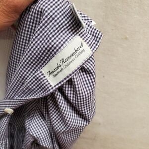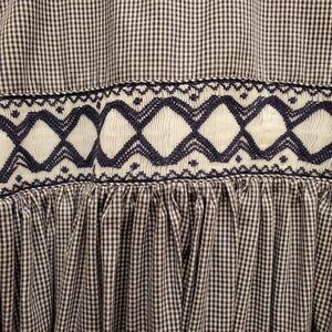 Dress is Blue/White Gingham Checked with Blue embroidery.