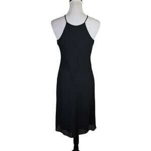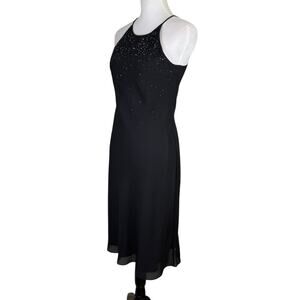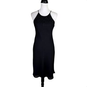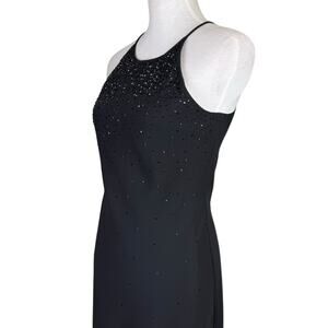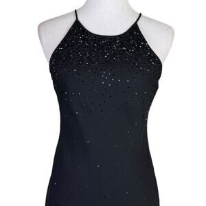 Vintage Amanda Smith 90s Y2K Black Chiffon Seed Bead Halter Strap Party Dress