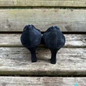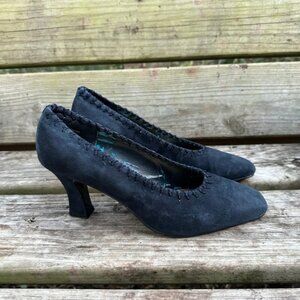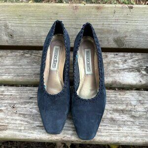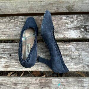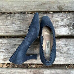 Vintage Amanda Smith Marilyn Kid Suede Pumps Pointed Toe Heels Navy Blue Sz 9.5
