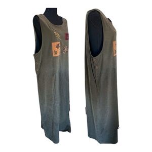 Amanda Smith Loose -Fit Dark Leafy Green, Embroidered 🍁 Maxi Dress Four large side button enclosure for easy on/off. MEDIUM WEIGHT Polyester/Spandex blended soft material.