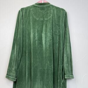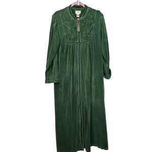 Vintage Amanda Stewart Velour Robe XL Green Zip Front Embroidered Intimates