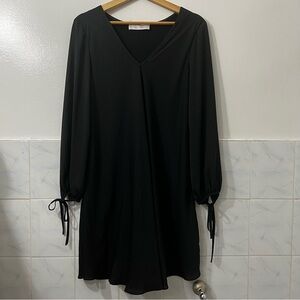 Vintage Amanda Uprichard M Long Sleeve V Neck Black Chic Minimalist Mini Dress