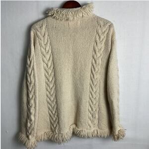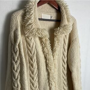 Vintage Amano Beige Wool Cable Knit Womens Size Large Zipped Cardigan Sweater