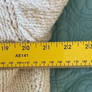 This Vintage Amano Beige Wool Cable Knit Womens Size Large Zipped Cardigan Sweater is good wear for all season mainly cold weather. This cardigan is a wool cable knit all around, with a zipper instead of being a pullover or open it also is a heavy cardigan with fringe sleeves, hem and around the neck of the cardigan has a little stain on the right sleeve of the arm of the cardigan. Very good quality has side pockets, also good for your wardrobe. So stay warm and comfortable in this Vintage Amano Beige Wool Cable Knit Womens Size Large Zipped Cardigan Sweater