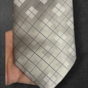 Vintage Amanti Italian Style Plaid Necktie – Silver Gray Microfiber Handmade