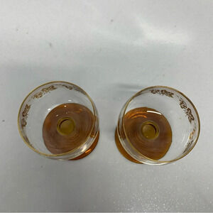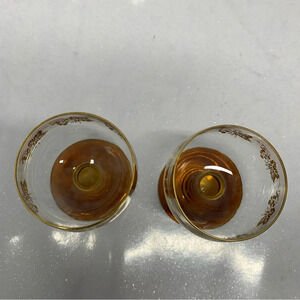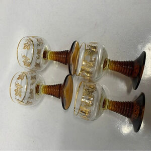 Vintage Amber Beehive Stem Wine Cocktail Glass Set/4 Gold Trim Barware