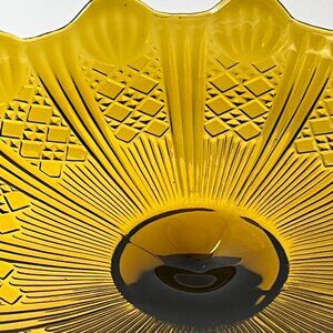 Stunning pedestal amber compote with a ruffled edge, diamond, and ribbed pattern. It’s been identified as made in Europe in the first quarter of the 20th century. My photos could not capture the true beauty of this piece when light flows through it.