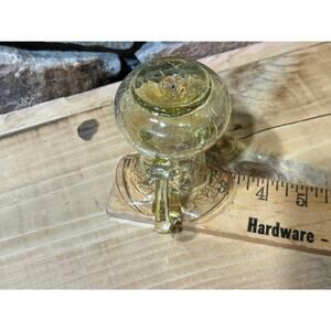 Vintage Amber Crackle Glass Small Pitcher w/ handle. Ruffle Lip. 4" tall.