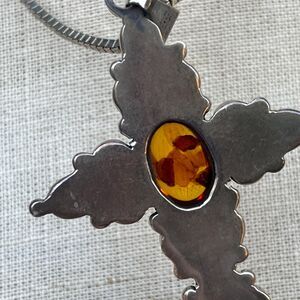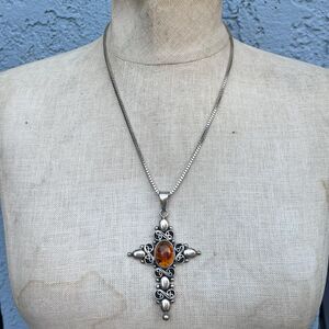 Vintage Amber Cross Necklace in Sterling Silver Cross Mexican Jewelry ATI