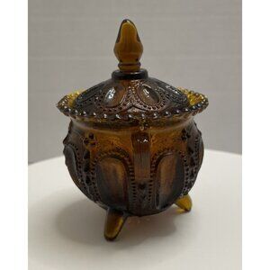 Vintage Amber Degenhart Style Gypsy Pot Toothpick Match Holder with Lid - EUC