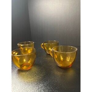 Vintage Amber Depression Glass Tea Cups – Set of 4 – 2.5" Tall