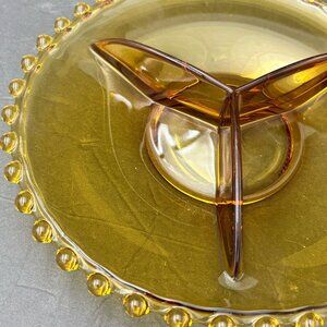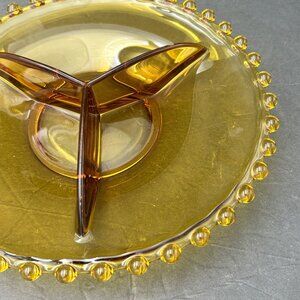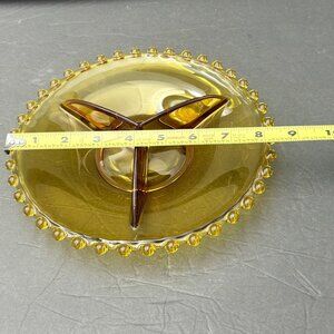 Vintage Amber Glass 3 Divided Serving Plate Dish Beaded Edge 70s 80s Art Deco