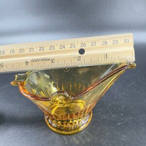 Vintage Amber Glass Ashtray Coal Bucket Mid Century Glassware Decor Small Dish