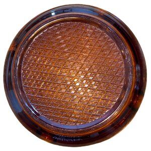This vintage amber glass ashtray features a classic diamond pattern, offering both utility and style. Its robust construction and timeless design make it a sophisticated addition to any vintage collection or smoking area. Ideal for collectors or as a decorative piece in your home or office.