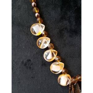 Vintage Amber Glass Bead Necklace with Teardrop Pendant and Gold Accents
