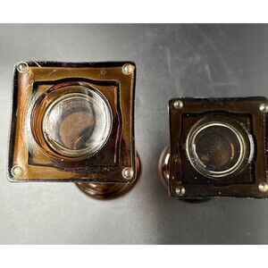 Add a touch of vintage elegance to your home decor with these beautiful amber glass candlestick holders. Perfect for all occasions, these round candle holders are designed to hold 3 inch diameter candles and come in two different styles. Crafted from high-quality glass, these candle holders are both durable and stunning. The unique color of these candle holders makes them a perfect addition to any decor. Add these vintage amber glass candlestick holders to your collection today!