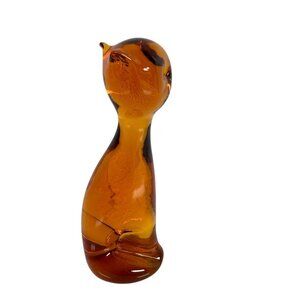 Vintage Amber Glass Cat Figurine 4.5"
