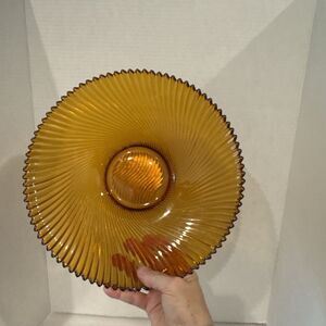 Every time I think I found my favorite piece of vintage amber glass, I find yet another one that blows my mind. The sawtooth edge, and the swirl pattern is mesmerizing. It is in amazing condition. No chips or cracks. Please see photos for details. France is stamped on the bottom.