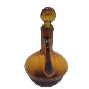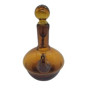 Vintage Amber Glass Cruet Decanter With Stopper Hand Blown 8" Tall Mid Century