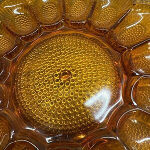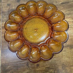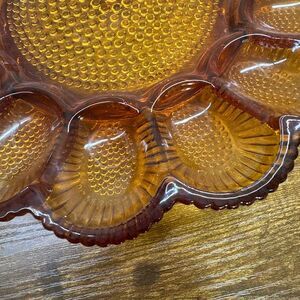 Vintage Amber Glass Deviled Egg Platter 11” Dish Gold