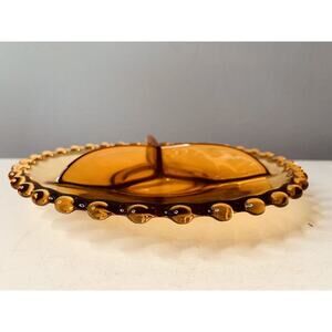 Vintage Amber Glass Divided Candy Dish Tray Candlewick Hob Nob Edges Art Deco