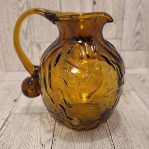 Vintage Amber Glass Small Pitcher/Creamer Looped Tail Handle