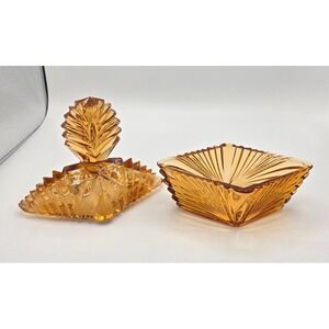 Vintage Amber Glass Swan Trinket Dish Candy Nut Bowl with Lid