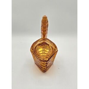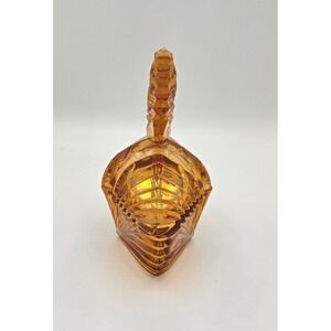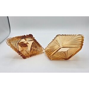 Unveiling a captivating amber glass swan, a vintage treasure that exudes elegance and charm. This exquisite piece features a detailed swan design, complete with a gracefully curved neck that serves as a handle for the lid. The amber hue radiates warmth, casting a soft glow that enhances its intricate detailing. The dish is perfect for holding trinkets, candies, nuts, or other small treasures, adding a touch of vintage sophistication to any space. Imagine it gracing your vanity, holding your favorite jewelry, or displayed on a coffee table, sparking conversation and admiration. It would also be a delightful addition to a vintage-themed wedding or a charming accent in a cozy reading nook.