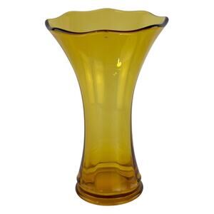 Add a splash of retro sunshine to your space with this gorgeous amber glass swung vase! Standing 9 inches tall, its elegant, free-form design is pure mid-century magic. The beautiful honey-amber color catches the light perfectly, making it a stunning centerpiece or a standout piece on any shelf. It's in wonderful vintage condition, with a tiny, original blemish from its creation that adds to its unique history and charm. Perfect for holding a few of your favorite stems or just looking fabulous on its own. Grab this little piece of 70s-inspired art glass and let the good vibes flow!