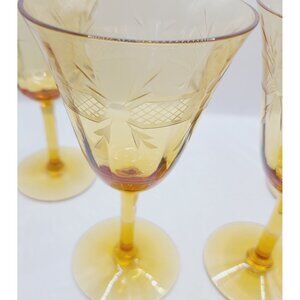 These vintage amber wine goblets feature an etched floral design, adding elegance to any table setting. Ideal for collectors or entertaining guests.