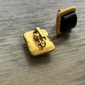 These elegant square earrings feature a striking amber center framed by a luxurious gold border. Clip on design. Classy and timeless.