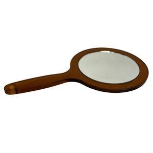 Vintage Amber Handheld Mirror 9x6 Lucite Vanity Dresser MCM Retro