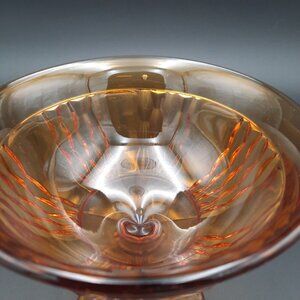 Vintage Amber Indiana Glass Compote Candy Pedestal Dish Bowl Honey Comb Gold