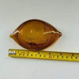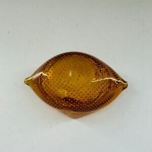 Vintage Amber MCM Blown Bubble Art Glass Dish Ashtray