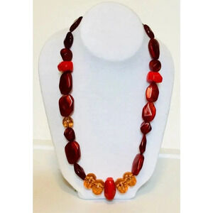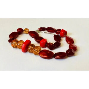 Vintage Amber Orange Mixed Bead Faceted Octagonal Chunky Beaded Necklace Jewelry