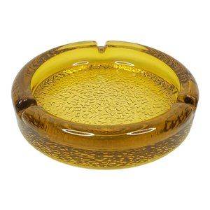 Vintage Amber Pebble Textured Bottom Glass Ashtray READ Trinket 5.5" Diameter