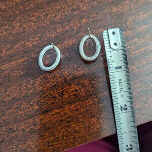 Vintage Estate Amber Silver Oval Pierced Earrings