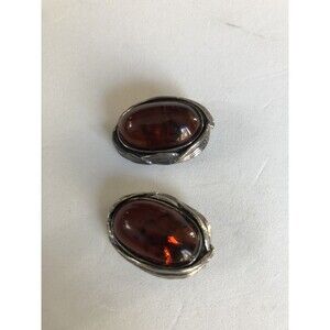 Vintage Amber Sterling Silver Earrings Clip On Baltic Amber Cognac