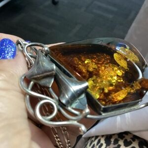 Questions? Leave a comment below! this is absolutely one of the most beautiful pieces I have ever owned. It’s made by an artist Sterling the Amber is meticulous. The Sterling work is gorgeous. Look at how the leaves fold in the necklace is a chain that we added so that it would be absolutely more beautiful and more sellable having that chain with it. It’s a unique piece made by a local artisan stunning amber when I tell you it’s huge the presence is huge. The pictures don’t do it justice. The inclusions are amazing. I haven’t seen any like.