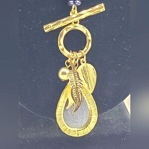Vintage Amber Teardrop with Gold Tone Leaves and Blue Beads Necklace