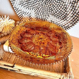 Vintage Amber Tiara Glass Saw Tooth Edge Egg Platter Marigold Carnival Glass