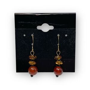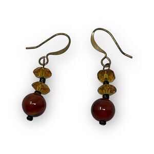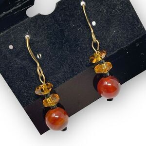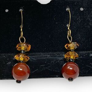 Vintage Amber and Gold Tone Beaded Drop Dangle Earrings