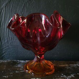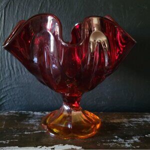 Vintage Amberina Persimmon Orange Glass Compote Amberina, Glowy, L.E. Smith