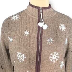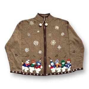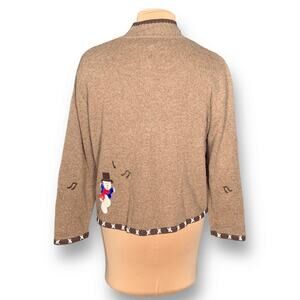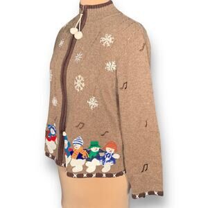 Vintage Ambra Sweater Tan Christmas Full Zip Mock Neck Cardigan Musical Snowman