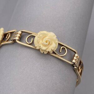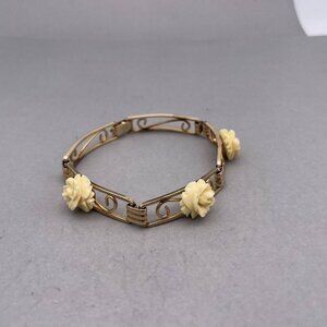 Vintage 14k Gold Filled Celluloid Rose Five Panel Bracelet