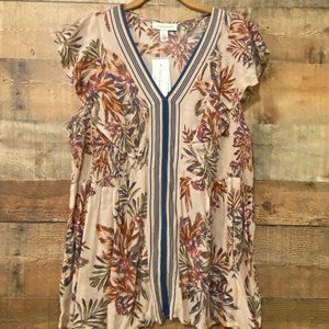 Vintage America Beige Floral Print Smocked Flutter Sleeve Top Size M NWT