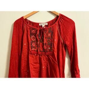 Vintage America Blouse Boho Peasant Tunic Embroidered Top Size S