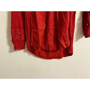 The Vintage America Blouse is a stylish and lightweight tunic top perfect for a casual occasion. This embroidered top features a floral pattern in a vibrant red color, ideal for the summer and spring seasons. With long sleeves and a peasant boho style, this blouse is a fashionable choice for women who appreciate unique and comfortable clothing. Made in India, this blouse is machine washable and available in size S, making it a versatile addition to any wardrobe.