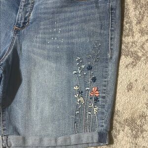 Vintage America Blue Jean Shorts with Floral Embroidery